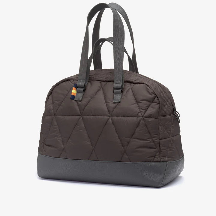 Dianne è una borsa bowling ideale per lo sport, il viaggio e il tempo libero, indossabile a mano o a spalla. Realizzata in tessuto trapuntato idrorepellente con imbottitura leggera, presenta manici confortevoli, un interno capiente con tasche e una base resistente in materiale sintetico effetto pelle tono su tono.