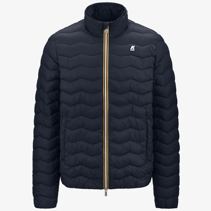 Valentine è la giacca da uomo che unisce la ricerca funzionale e l'impegno K-Way per il rispetto della natura. Realizzato in nylon riciclato che protegge dall'acqua e dal vento, ha una trapuntatura a onde dall'effetto grafico distintivo. L’aspetto innovativo è l’imbottitura in Thermore®, una fibra ottenuta dalla plastica riciclata e altamente isolante.